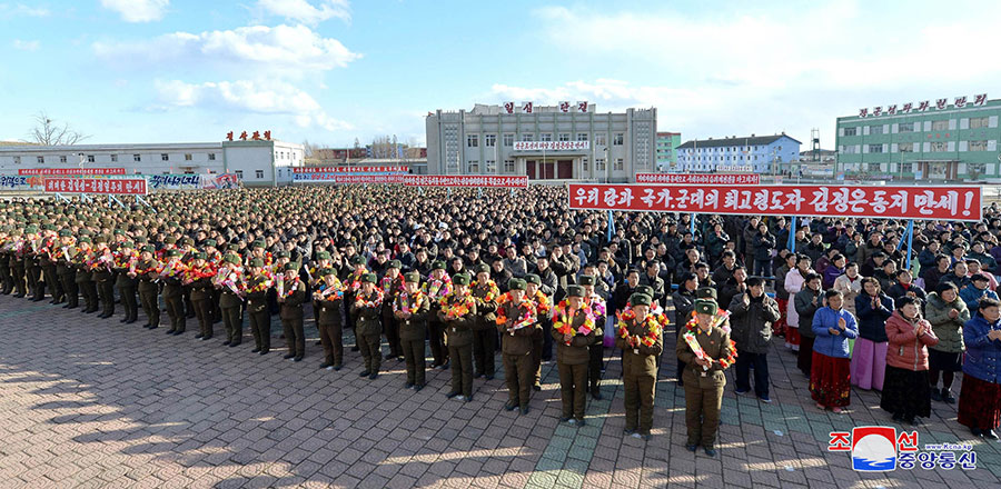 Přítomno bylo mužstvo a důstojníci Korejské lidové armády včetně sloužících příslušníků, kteří se zúčastnili ostřelování ostrova Jonpchjong, funkcionáři a civilisté ze všech oblastí života v kraji.