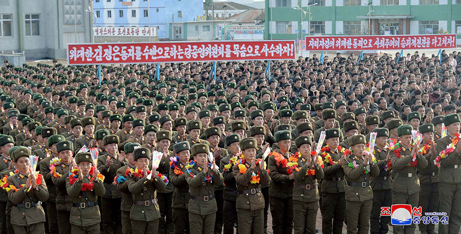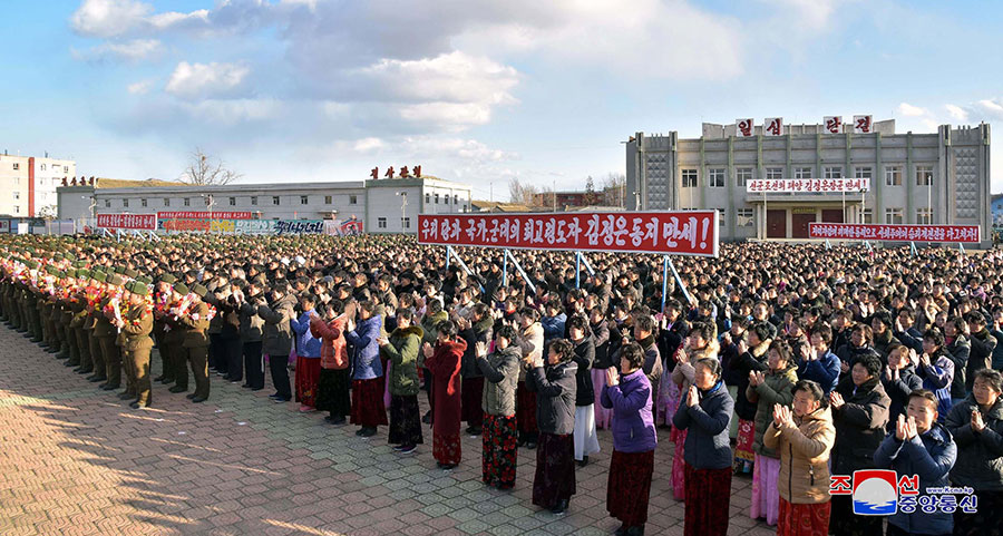 Pchjongjang, 24. listopadu čučche 106 (2017) (KCNA) – Armádně-lidové společné shromáždění se konalo v kraji Kangrjong v provincii Jižní Hwanghe 23. listopadu u příležitosti 7. výročí vítězství v ostřelování ostrova Jonpchjong.