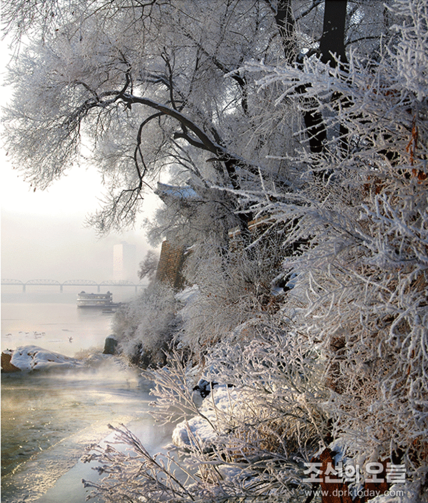 Pchjongjang, 7. decembra čučche 106 (2017) – V KĽDR v týchto dňoch už naplno udrela zima. Teploty výrazne klesajú pod pod mrazu a biely srieň vytvára krásne scenérie.