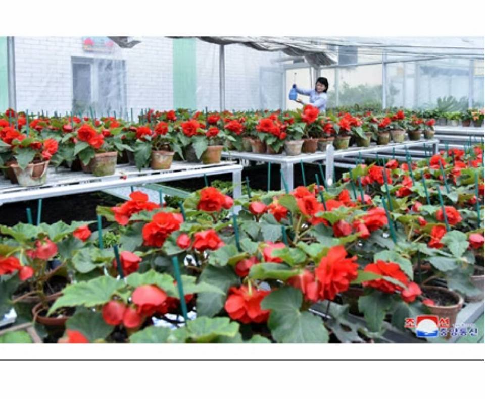 Pchjongjang, 14. decembra čučche 106 (2017) (KCNA) – Zamestnanci skleníka Kimirsenie-Kimčongilie v obvode Phjongčchon v Pchjongjangu privádzajú črepníkové Kimčongilie do plného rokzvetu s hlbokou túžbou po vodcovi súdruhovi Kim Čong Ilovi.