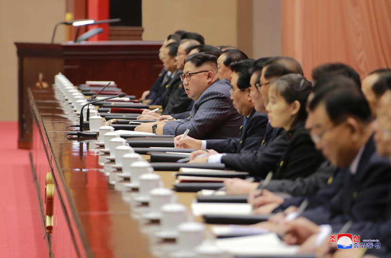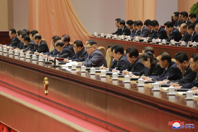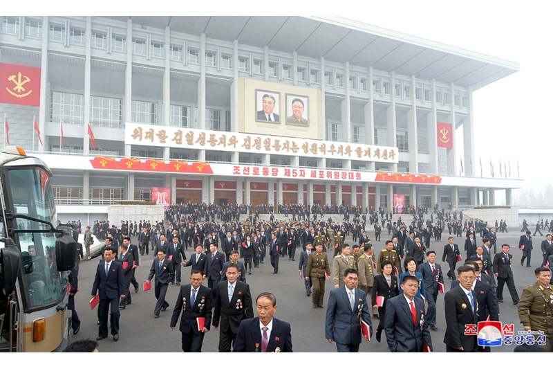 Soudruh Kim Čong Un, předseda KSP, a členové Výboru výkonné politiky Ústředního výboru KSP zaujali místa na tribuně pro vedení konference. Na tribuně zasedli také vedoucí představitelé ústředních a provinčních stranických výborů.