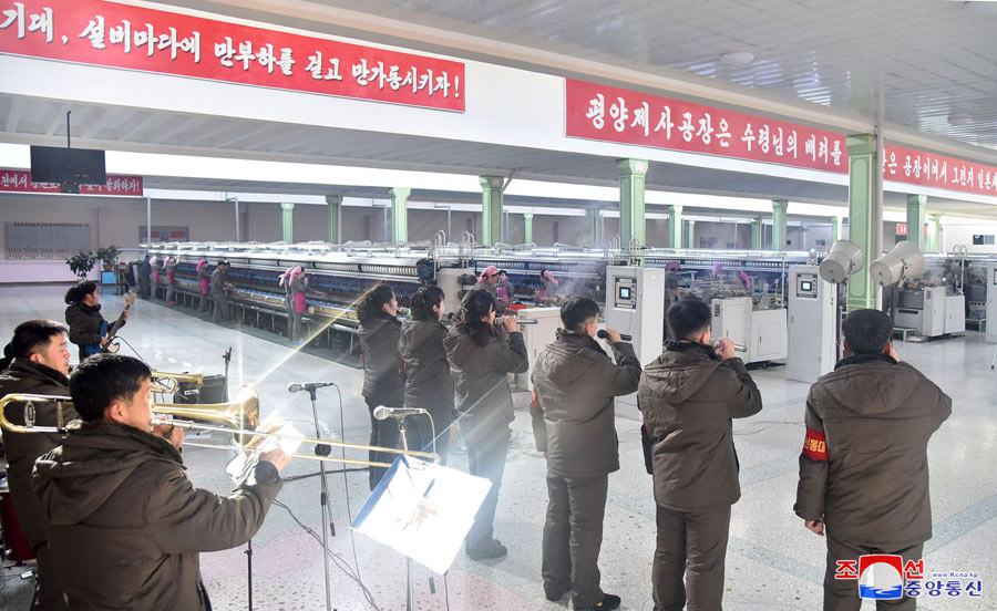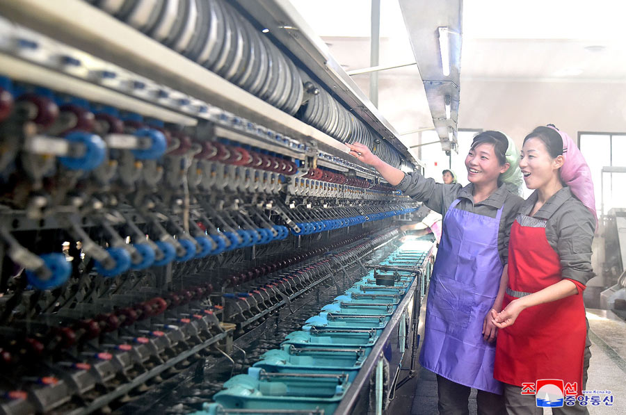 Pchjongjang, 4. ledna čučche 107 (2018) (KCNA) – Pchjongjangská Přádelna Kim Čong Suk s velkým nadšením přijala novoroční projev váženého nejvyššího vůdce soudruha Kim Čong Una a dělnická třída továrny provedla inovace ve výrobě s odhodláním oslavit letošní rok 70. výročí Korejské lidově demokratické republiky velkým pracovním úspěchem.
