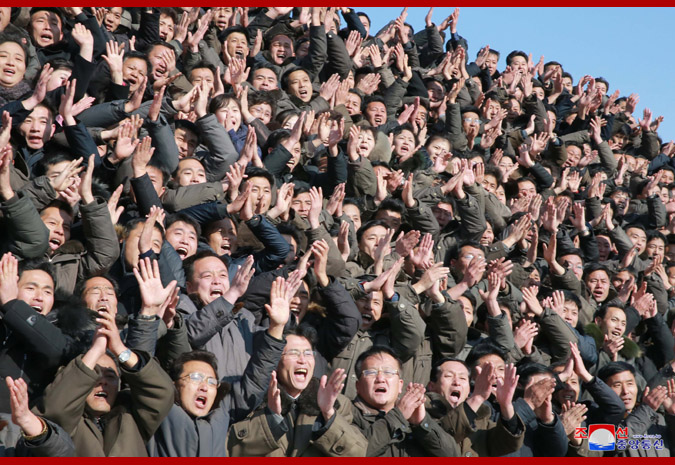 Vážený soudruh nejvyšší vůdce vyjádřil očekávání a přesvědčení, že funkcionáři a vědci akademie znatelně přispějí k vybudování prosperující a silné země úspěchy vědeckého výzkumu předtím, než se nimi vyfotografoval.