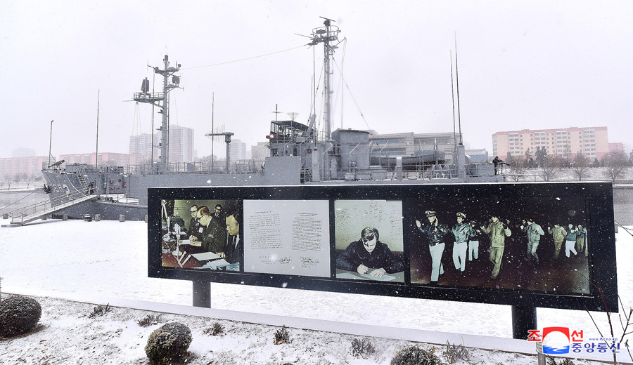 Pueblo je přímým produktem agrese proti Korejské lidově demokratické republice, jíž se dopouštějí imperialisté USA od poloviny 19. století, a trofejí symbolizující hořkou porážku USA a věčné vítězství KLDR v protiamerické konfrontaci.23. ledna čučche 57 (1968) zajali námořníci KLA loď, která zasáhla do nedotknutelných teritoriálních vod KLDR, čímž jasně ukázali světu, že nikdy nebudeme tolerovat agresory.
