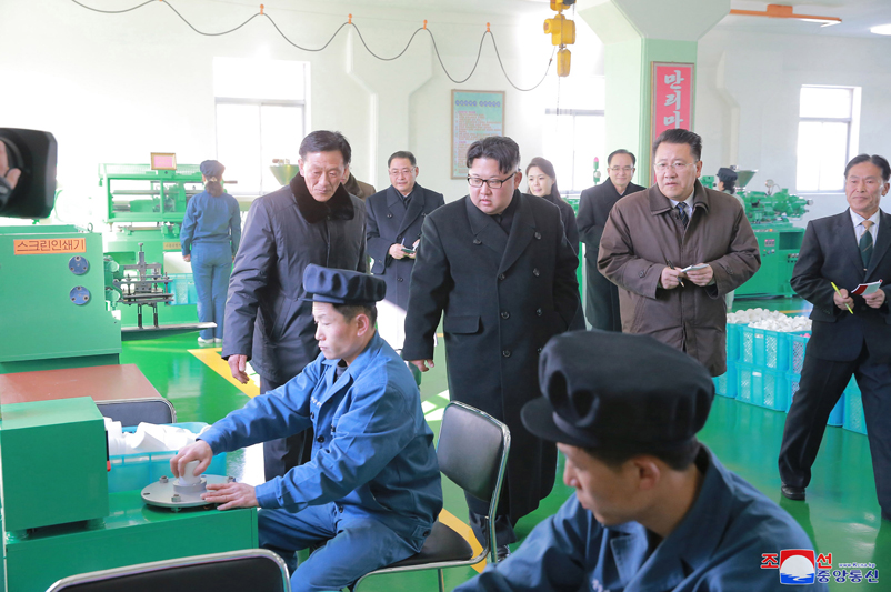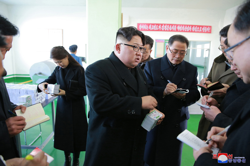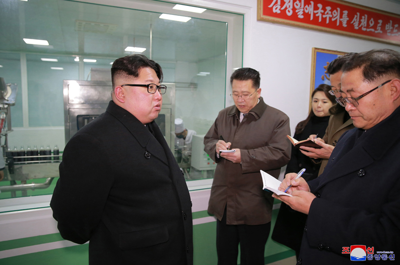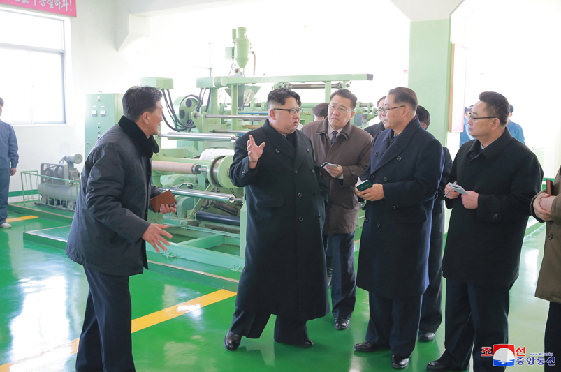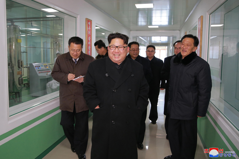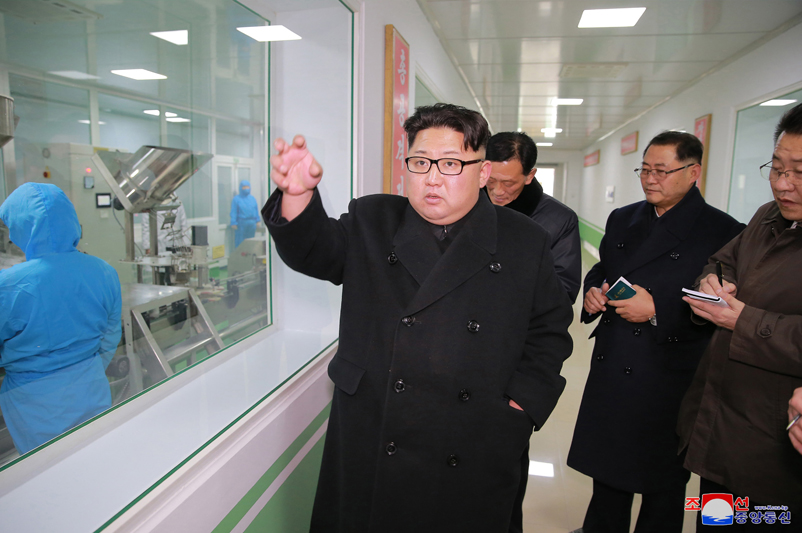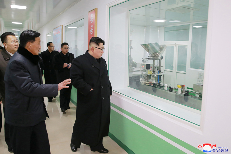 Pchjongjang, 25. ledna čučche 107 (2018) (KCNA) – Vážený nejvyšší vůdce soudruh Kim Čong Un, předseda Korejské strany práce (KSP), předseda Komise pro státní záležitosti KLDR a vrchní velitel Korejské lidové armády, společně se soudružkou Ri Sol Ču poskytl polní pokyny Pchjongjangskému farmaceutickému závodu.