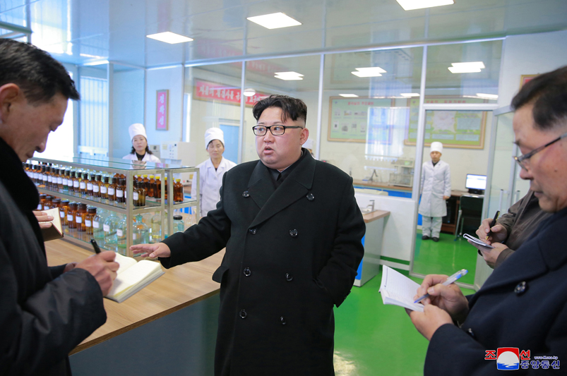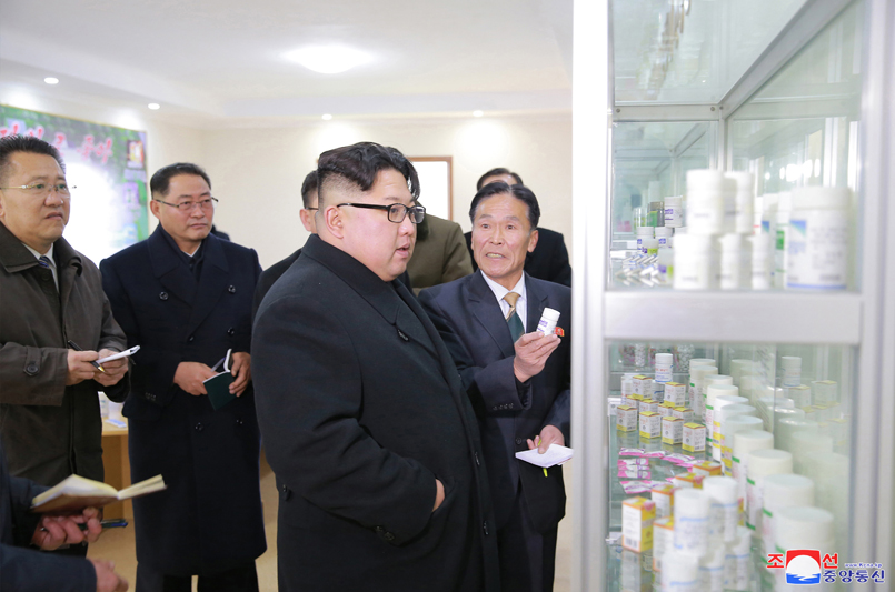 Podrobně se seznámil s výrobou léků, procházeje dílnou obalových materiálů, dílnou západních a Korjo (tradičních) léků a dalšími částmi továrny. Zdůrazniv potřebu, aby továrna uvedla na normální základnu výrobu různých léků na podporu zdraví lidu a na léčení a prevenci nemocí, naléhal na příslušná odvětví, aby dodávala včas suroviny a další materiály a technické prostředky potřebné pro výrobu léčiv.