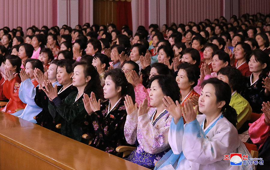 Ukázaly také nadšení všech žen pevně kráčet vpřed po cestě revoluce, jednomyslně následujíce stranu s hrdostí, že jsou občankami socialistické Koreje, která demonstruje svou obrovskou sílu pod vedením současného rozvoje dvou front.