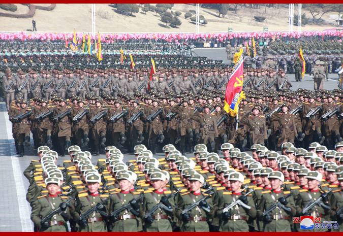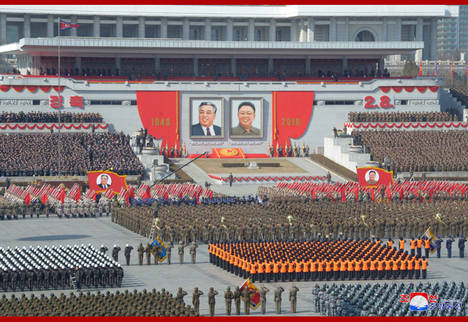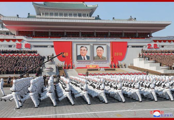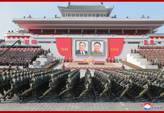 Pchjongjang, 9. února čučche 107 (2018) (KCNA) – Ve čtvrtek se na Kim Ir Senově náměstí v Pchjongjangu konala velká vojenská přehlídka na oslavu 70. výročí založení Korejské lidové armády.