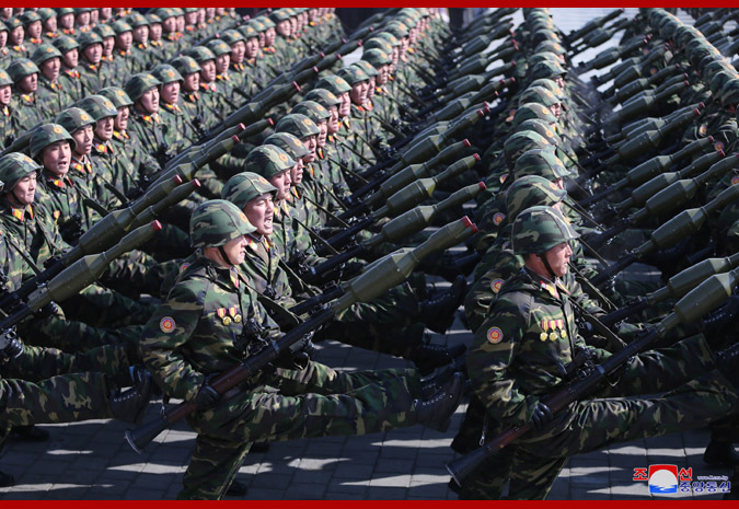 Vojenská přehlídka na oslavu 70. výročí KLA prokázala víru a vůli korejské armády a lidu dále upevňovat KLDR jako neporazitelnou pevnost socialismu a přinést konečné vítězství revoluce čučche.