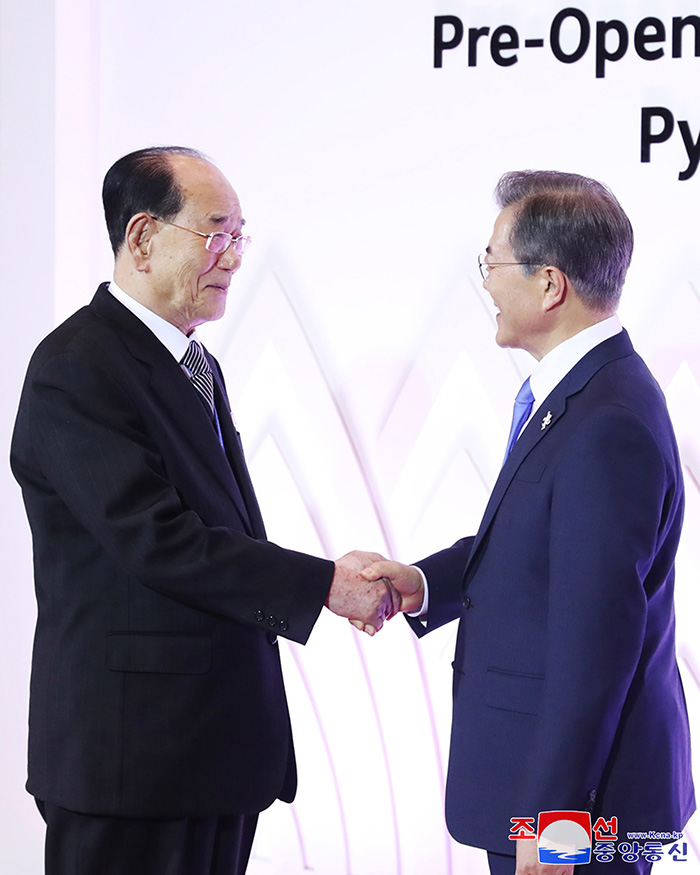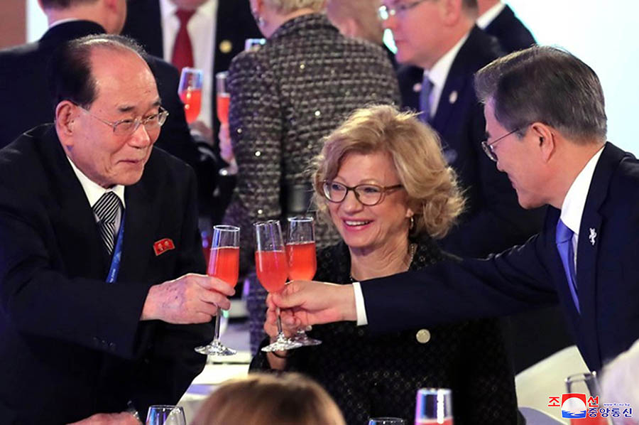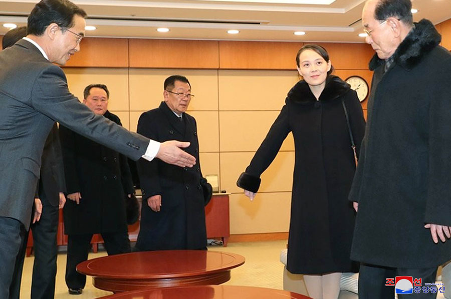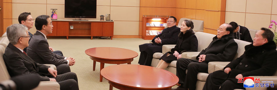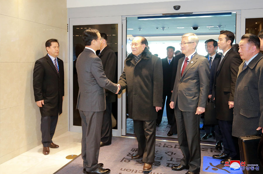 Soudruh Kim Jong Nam a soudružka Kim Jo Čong vedli příjemné rozhovory se členy jižní strany v místnosti pro čestné hosty. Poté odjeli rychlovlakem do Pchjongčchangu, kde se bude konat slavnostní zahájení zimních olympijských her.