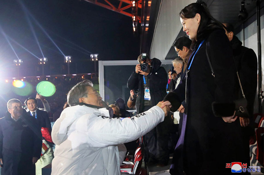 Přítomni byli členové delegace na vysoké úrovni KLDR a delegace Národního olympijského výboru, umělecké skupiny a povzbuzující skupiny a povzbuzující skupina Generálního sdružení Korejců v Japonsku. Účastnili se prezident Mun Če In a osobnosti politických a společenských kruhů jižní Koreje, prezident Mezinárodního olympijského výboru Thomas Bach, hlavy států a vlád různých zemí, zahraniční hosté a sportovci.