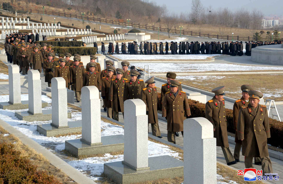 Pchjongjang, 7. února čučche 107 (2018) (KCNA) – U příležitosti 70. výročí založení Korejské lidové armády (KLA) byly položeny věnce na hřbitově revolučních mučedníků na hoře Tesong, hřbitově vlasteneckých mučedníků v Sinmi-ri a hřbitově mučedníků Vlastenecké osvobozenecké války.