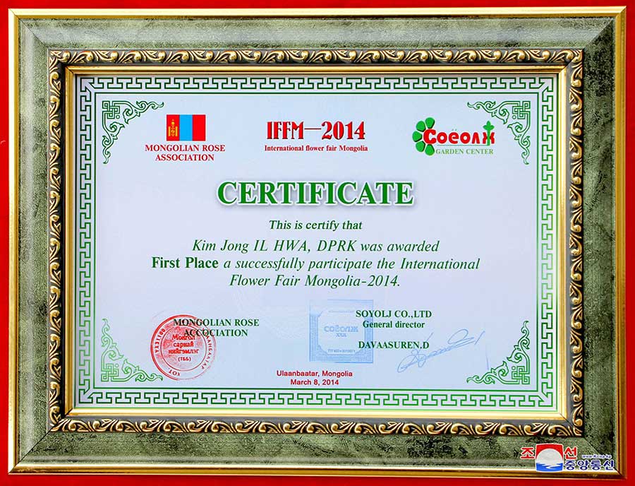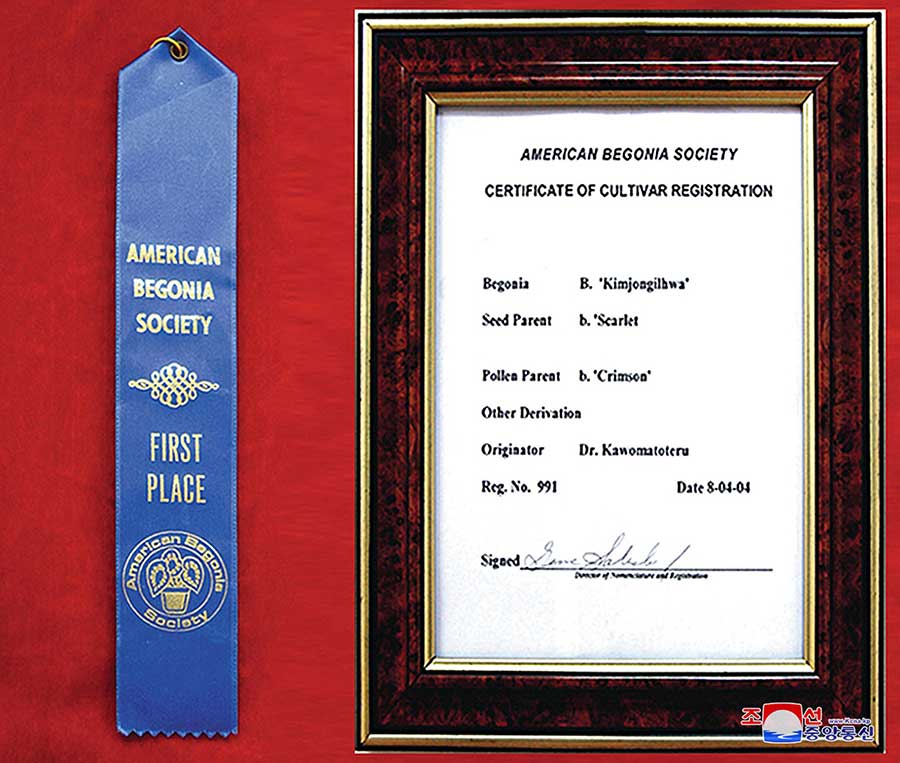 Kamo Mototeru, japonský pestovateľ kvetín, vyšľachtil novú kvetinu a chcel ju pomenovať po obrancovi mieru a spravodlivosti, architektovi krásnej budúcnosti ľudstva a vynikajúcom mužovi, ktorý si získal úctu všetkých ľudí. Po preštudovaní sveta a prečítaní biografií veľkých osôb sa rozhodol pomenovať svoje stvorenie po kórejskom lídrovi Kim Čong Ilovi. Napísal mu list: