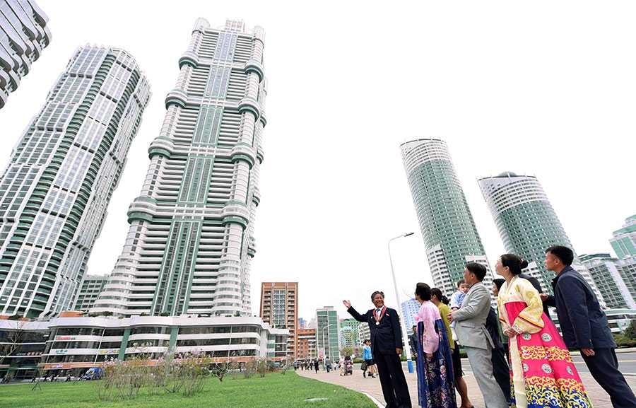 Země postižená drakonickými sankcemi, blokujícími vývoz i dovoz prakticky všeho, přitom mohutně staví architekturu, za kterou by se nemusel stydět ani Vancouver – přitom nejnovější mrakodrapy v centru Pchjongjangu neslouží jako komerční prostory pro byznyscentra či apartmány pro superbohaté, ale jako byty pro rodiny vědců, výzkumníků a učitelů.