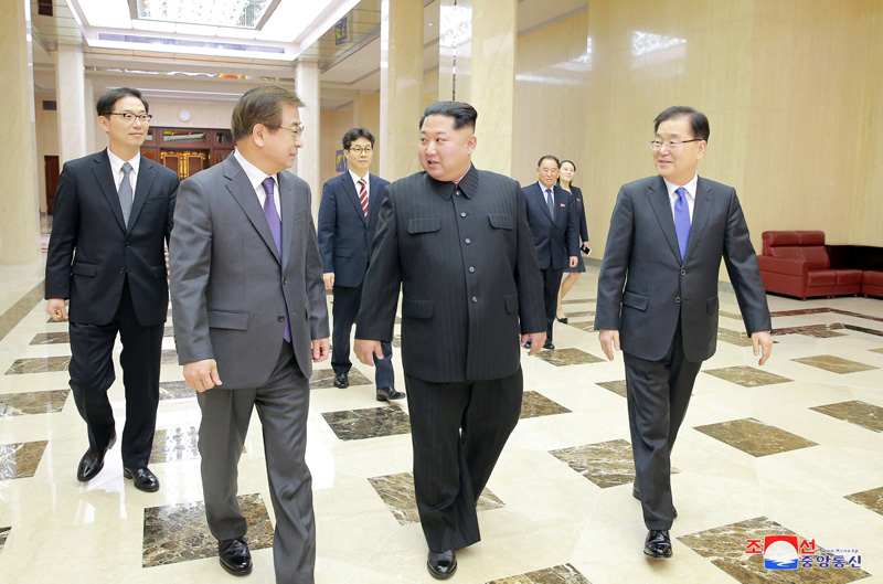 Vyslechnuv od zvláštního vyslance jižní strany záměr prezidenta Mun Če Ina o jednání na nejvyšší úrovni, vážený soudruh nejvyšší vůdce si s ním vyměnil názory a projevil spokojený souhlas.