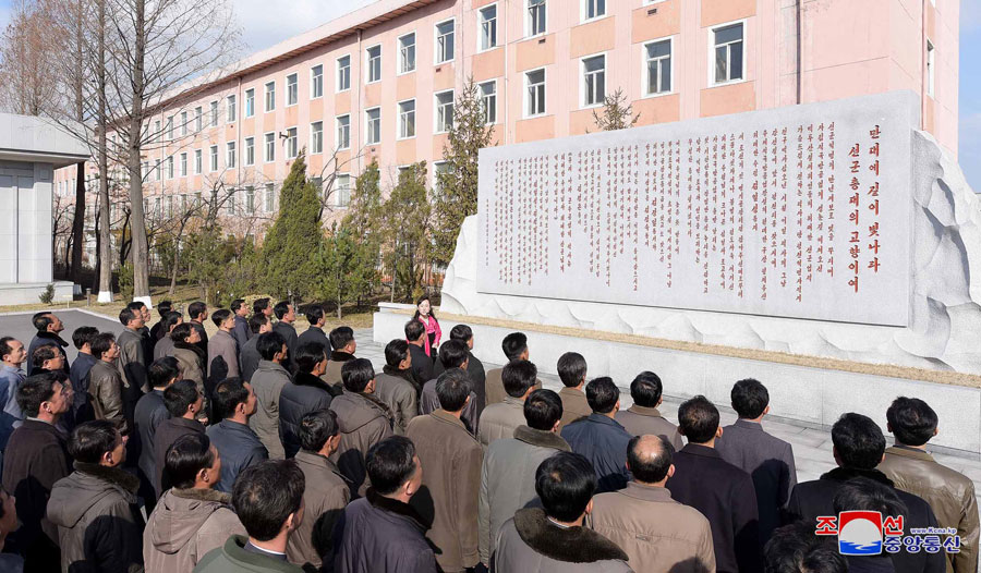 Pchjongjang, 17. března čučche 107 (2018) (KCNA) – Návštěvníci slavného místa revolučních dějin v Pchjongčchonu v KLDR udržující hluboko v srdcích nesmrtelné zásluhy vynikajících osobností, které vynaložily veškeré úsilí na vybudování obranného průmyslu založeného na čučche.