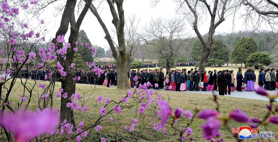Pchjongjang, 12. apríla čučche 107 (2018) (KCNA) – Pri príležitosti Dňa Slnka, najväčšieho sviatku národa, prúdia nekonečné davy kórejského ľudu i cudzincov do Mangjongde, aby navštívili rodisko prezidenta Kim Ir Sena a vyjadrili mu hlbokú úctu.