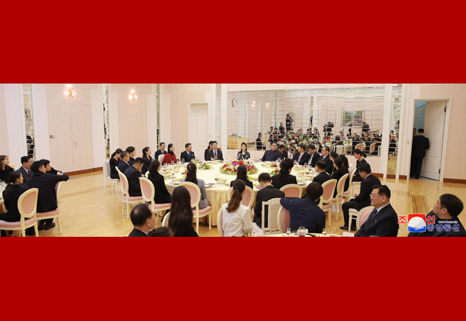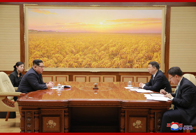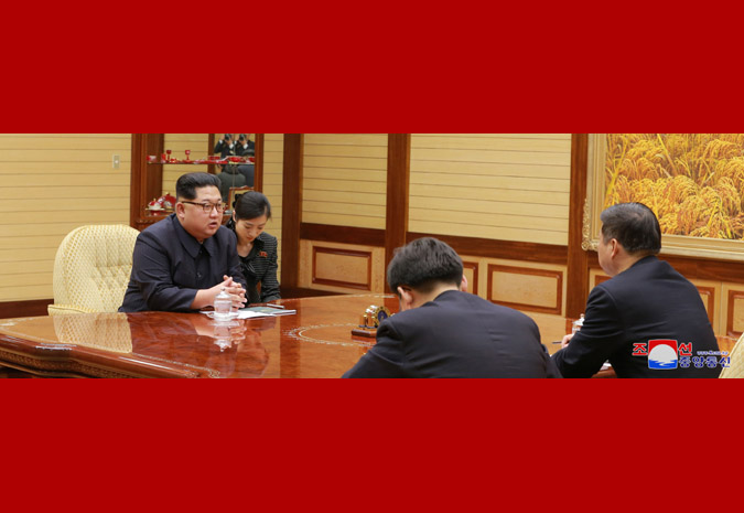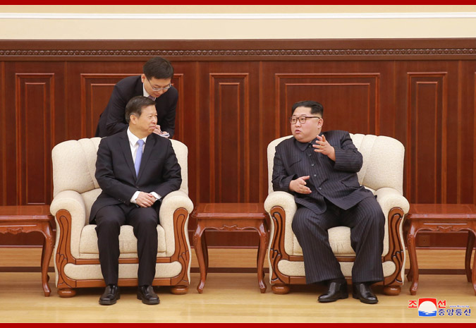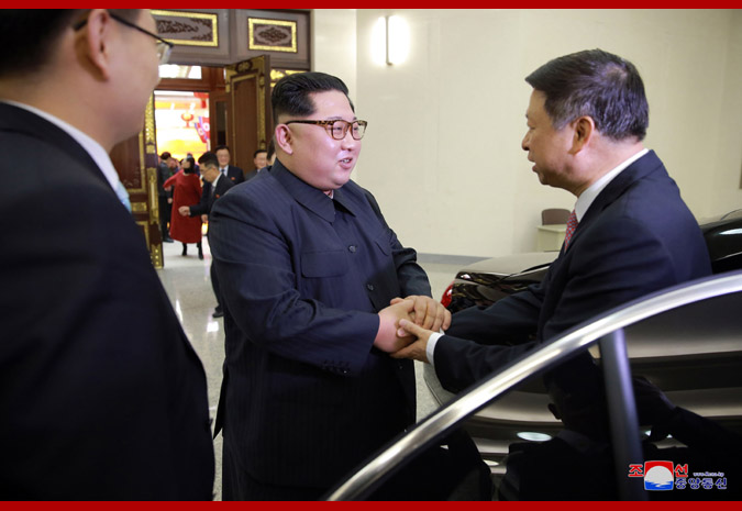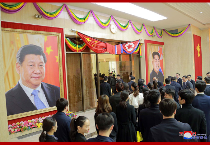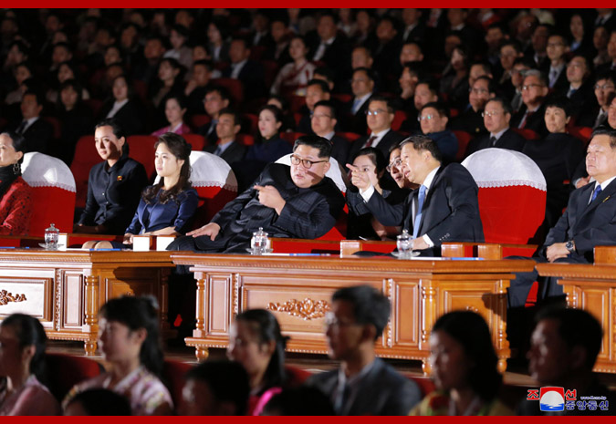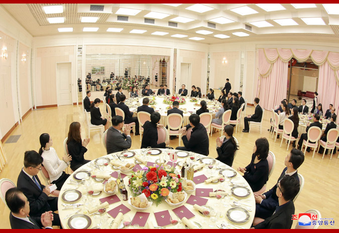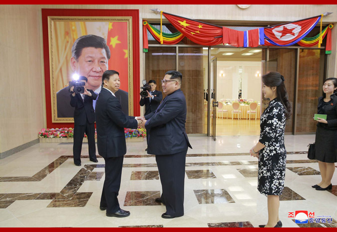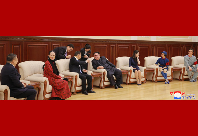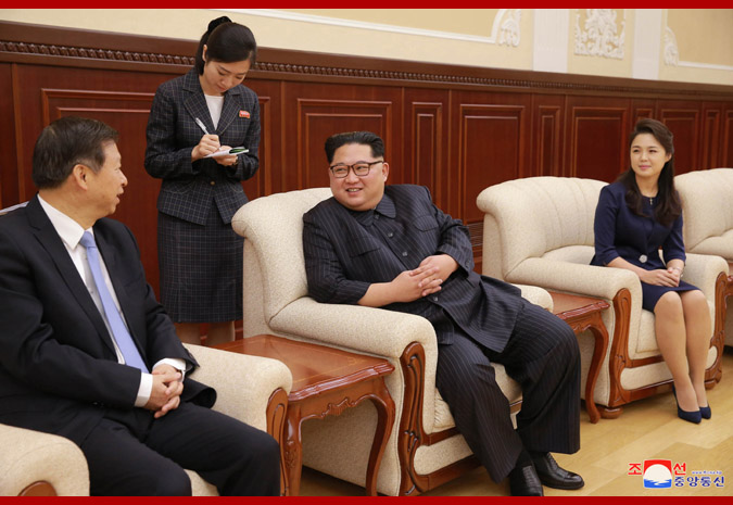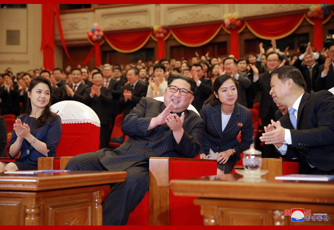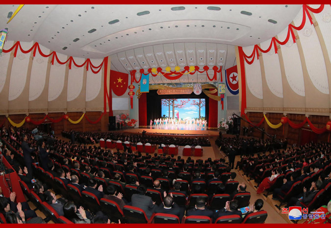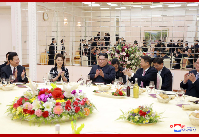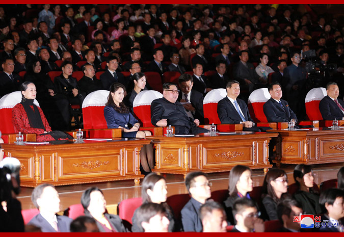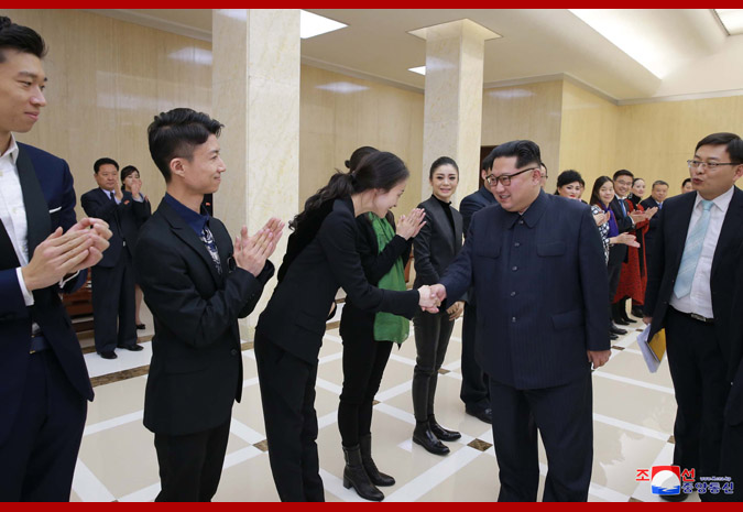 Soudruh Kim Čong Un vyjádřil očekávání, že návštěva čínského uměleckého souboru v Pchjongjangu bude významnou příležitostí pro pokračování a další konsolidaci tradice přátelství mezi KLDR a Čínou, společného pokladu, a nechal se na památku vyfotografovat se členy čínské umělecké skupiny.