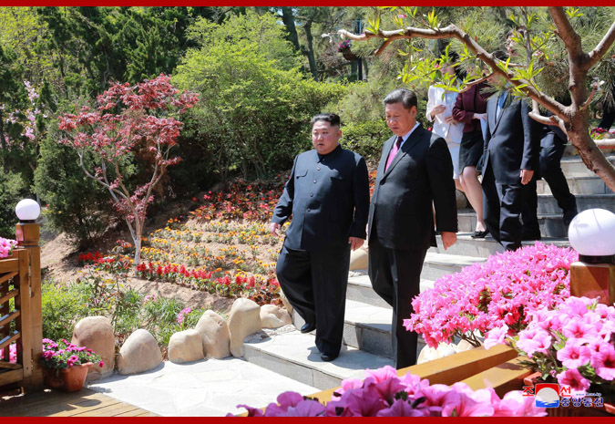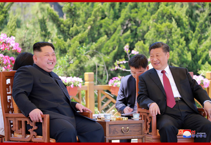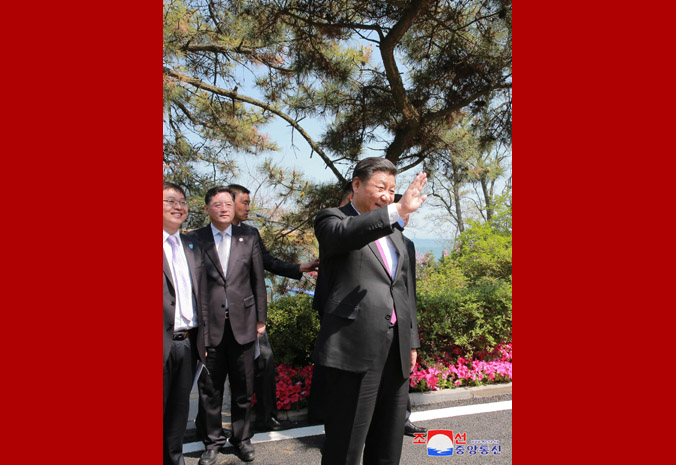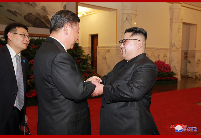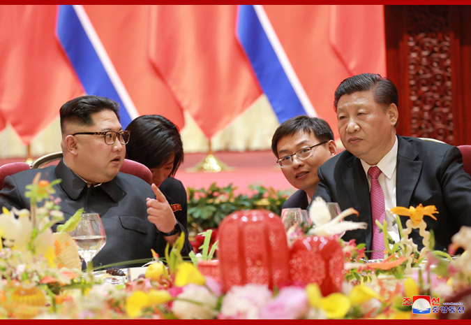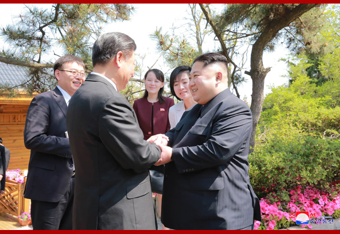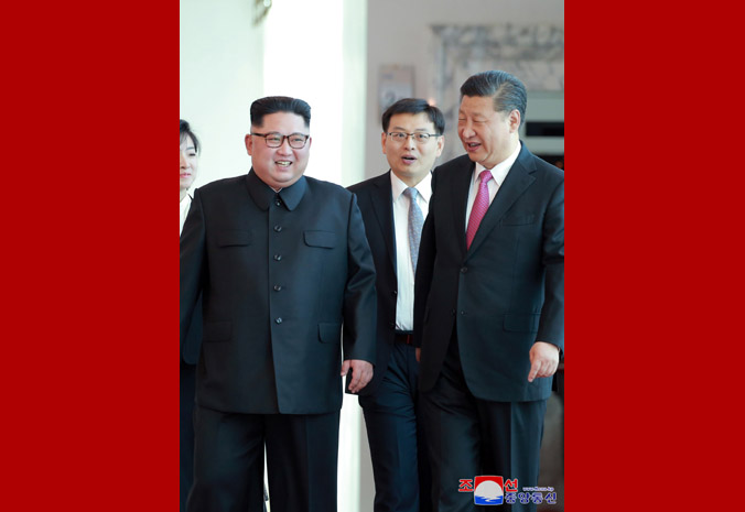 Soudruh Si Ťin-pching uvedl, že návštěva soudruha Kim Čong Una ukázala upřímnou ochotu přikládat mnoho důvěry vztahům mezi oběma stranami a oběma zeměmi, důvěřovat mu a čínské straně a praktikovat konsensus, kterého bylo mezi nimi dosaženo, a vysoce to ocenil. Vyjádřil potěšení nad pozitivním vývojem vztahů Číny s KLDR a situace na Korejském poloostrově po první návštěvě soudruha Kim Čong Una v Číně v březnu minulého roku a znovu poděkoval soudruhu Kim Čong Unovi za osobní návštěvu Číny k podpoře a koordinaci vzájemného porozumění obou stran a obou zemí. Řekl, že obě země sdílejí stejný osud a jejich vztahy jsou neměnné jako rtů a zubů, a uvedl, že je pevným postojem a jedinou správnou možností obou stran a vlád konsolidovat a rozvíjet vztahy mezi Čínou a KLDR bez ohledu na změny v situaci.