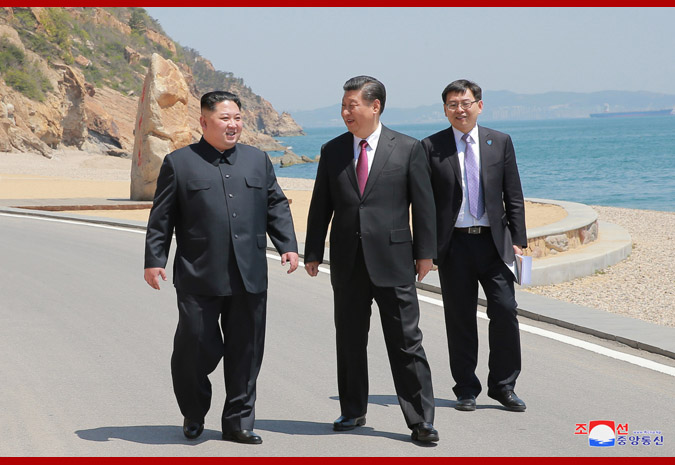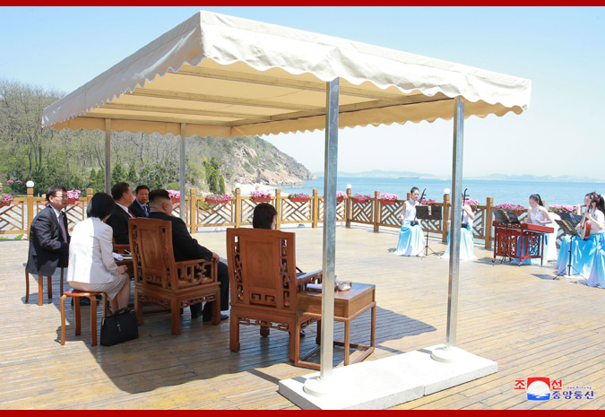 V úterý dopoledne se soudruh Kim Čong Un opět setkal se soudruhem Si Ťin-pchingem a otevřeně s ním hovořil během procházky podél moře. Poté byl vážený soudruh nejvyšší vůdce pozván na oběd pořádaný v pavilonu Qingdao hotelu Bangchuidao.