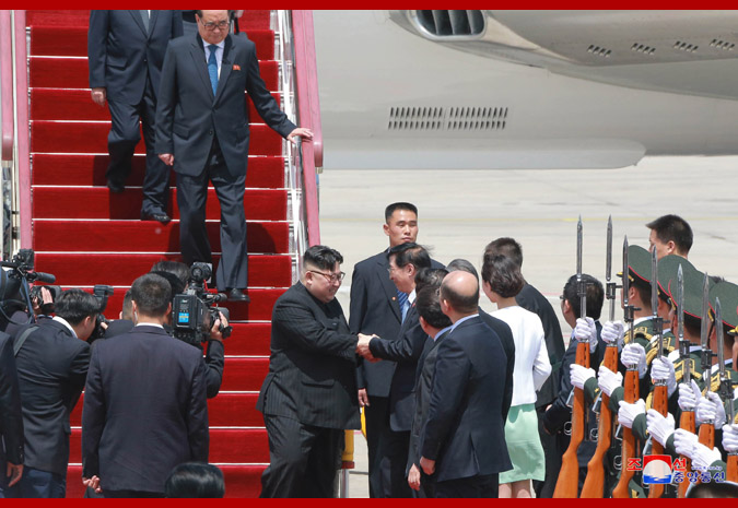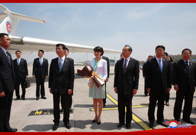 Soudruh Wang Huning, člen stálého výboru Politického byra ÚV KS Číny a člen sekretariátu ÚV KS Číny, soudruh Wang Yi, člen státní rady a ministr zahraničí, soudruh Song Tao, vedoucí oddělení mezinárodních vztahů ÚV KS Číny, soudruh Chen Qiufa, tajemník liao-ningského provinčního výboru KS Číny, a soudruh Tan Zuojun, tajemník Ta-lienského městského výboru KS Číny, byli přítomni na mezinárodním letišti v Ta-lienu, aby přivítali váženého soudruha nejvyššího vůdce.