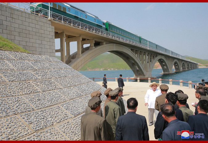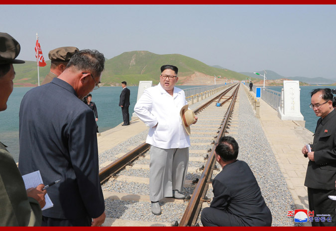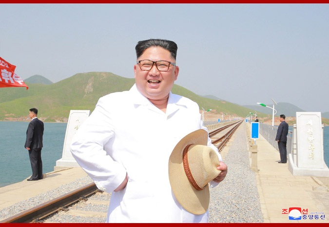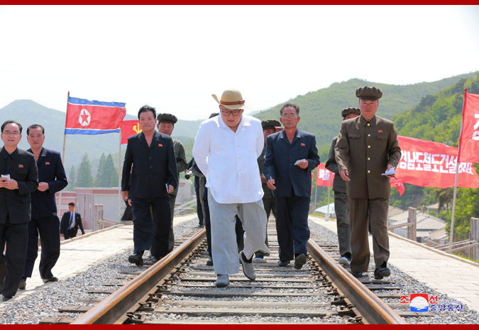 Pchjongjang, 25. května čučche 107 (2018) (KCNA) – Soudruh Kim Čong Un, předseda Korejské strany práce, předseda Komise pro státní záležitosti Korejské lidově demokratické republiky a vrchní velitel Korejské lidové armády, provedl inspekci dokončené železnice Koam – Tapčchon.