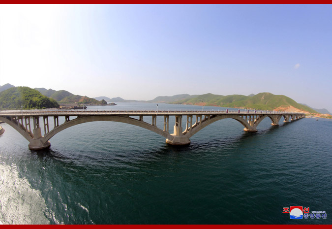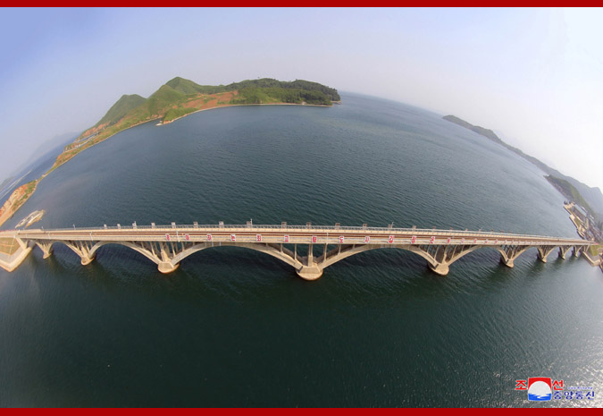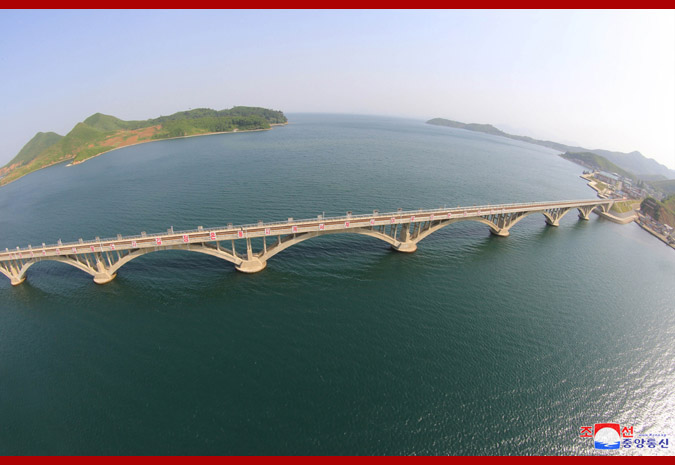 Budovatelé, vědci a technici úspěšně postavili železniční most přes hluboký mořský záliv Sokdžon jako monumentální stavbu éry Korejské strany práce, a tak vytvořili bezpříkladnou novou základnu v dějinách železničního budování KLDR.
