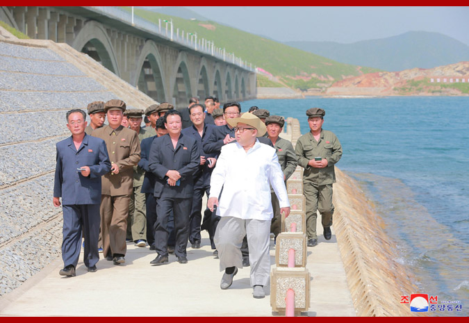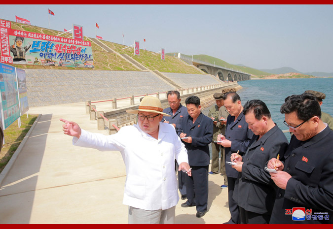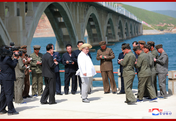 Pozoruje železnici v drsném moři, vážený soudruh nejvyšší vůdce s potěšením řekl, že je fantastická a vypadá jako veliký obraz. Další problém, kterým se zabývala strana, byl vyřešen, dodal s velkou spokojeností. Poznamenal, že dokončení železnice spojujících Koam s poloostrovem Songdžon otevřelo širokou cestu pro rázné zrychlení výstavby zóny rybářské vesnice Tapčchon, jak plánovala strana, a k uspokojivé přepravě ryb ulovených v oblasti rybářské vesnice. Vysoce ocenil budovatele, vědce a techniky za to, že úspěšně uskutečnili obtížný a velkolepý projekt vlastním úsilím. Uznale poznamenav, že skvěle navrhli námořní železniční most v zátoce Sokdžon a kvalitně provedli jeho stavbu, opakovaně vyjádřil spokojenost, řka, že čím déle se na něj dívá, tím je spokojenější a pyšnější. Dodal, že na východním pobřeží země byla vybudována další významná stavba.