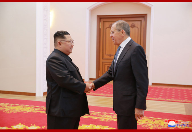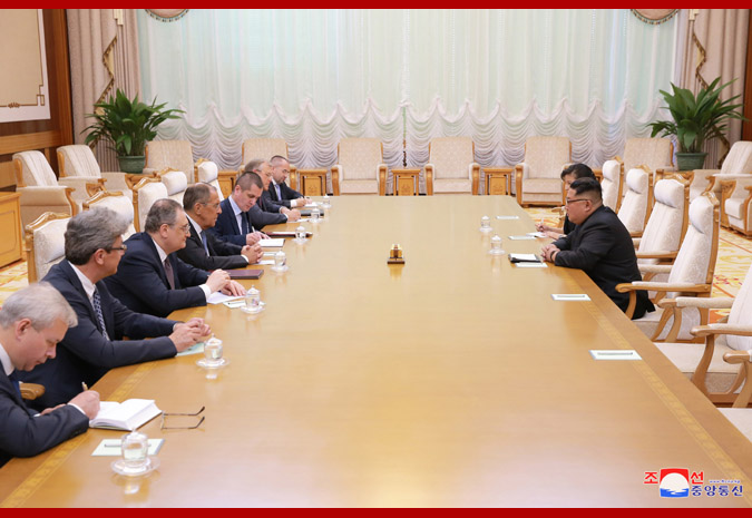 Pchjongjang, 1. júna čučche 107 (2018) (KCNA) – Vážený najvyšší vodca súdruh Kim Čong Un, predseda Kórejskej strany práce a predseda komisie pre štátne záležitosti Kórejskej ľudovodemokratickej republiky, vo štvrtok prijal ruského ministra zahraničných vecí Sergeja Lavrova na návšteve KĽDR v rezidencii pre zahraničné návštevy Pekhvavon.