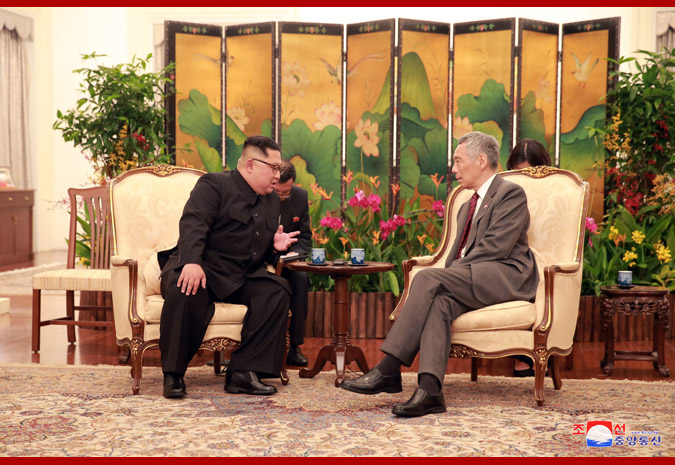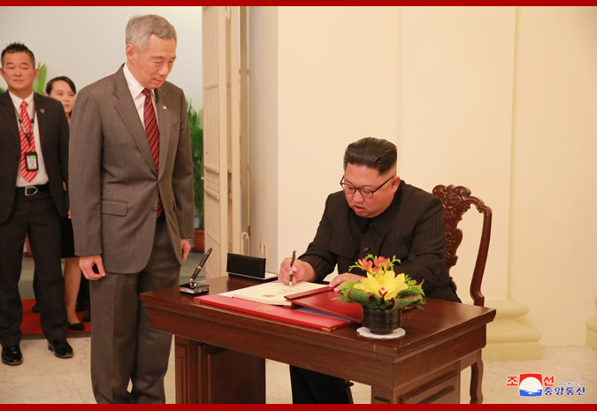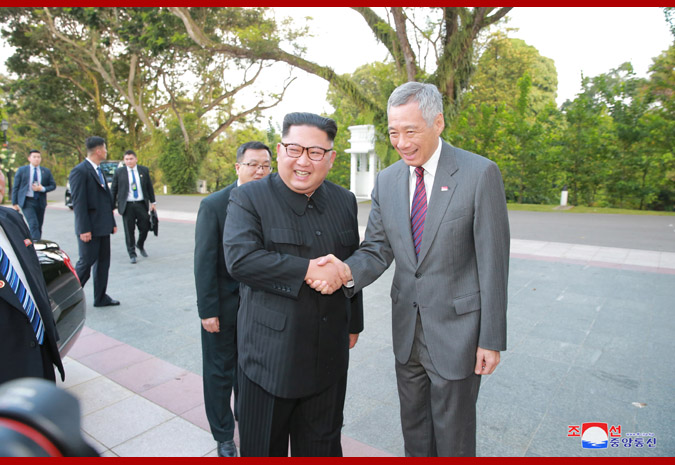 Pchjongjang, 11. června čučche 107 (2018) (KCNA) – Soudruh Kim Čong Un, předseda Korejské strany práce a předseda Komise pro státní záležitosti Korejské lidově demokratické republiky, nejvyšší vůdce naší strany, státu a armády, navštívil 10. června Republiku Singapur a sešel se v prezidentském paláci s předsedou vlády Lee Hsien Loongem.