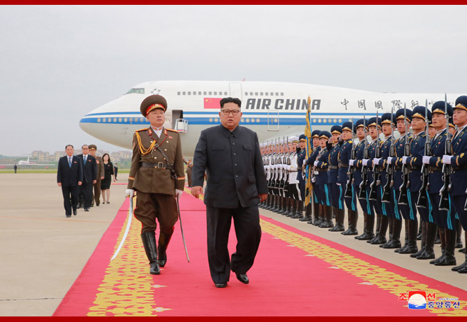 Čínské letadlo, kterým přiletěl, dorazilo na mezinárodní letiště v Pchjongjangu ve středu 13. června v 7 hodin ráno.