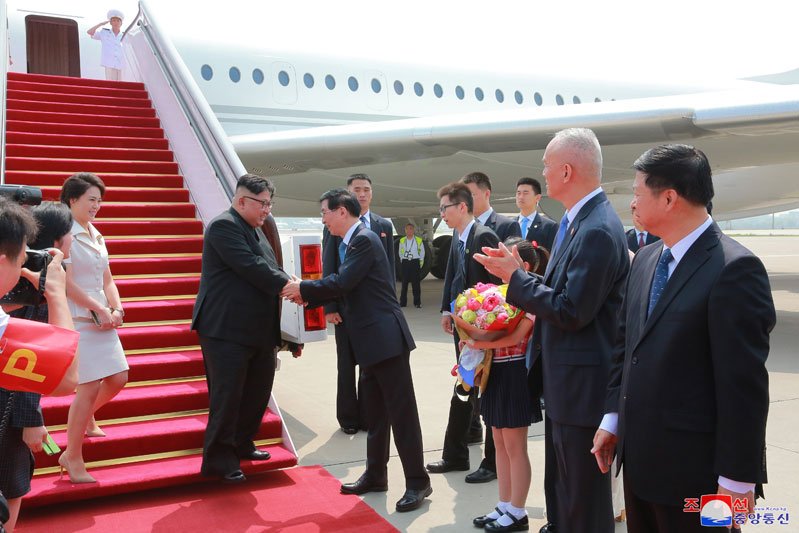 Pchjongjang, 20. června čučche 107 (2018) (KCNA) – Soudruh Kim Čong Un, předseda Korejské strany práce (KSP) a předseda Komise pro státní záležitosti Korejské lidově demokratické republiky, spolu s první dámou státu Ri Sol Ču, přijel dopoledne 19. června na mezinárodní letiště v Pchjongjangu, aby 19. a 20. června navštívil Čínskou lidovou republiku.