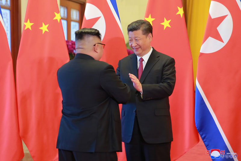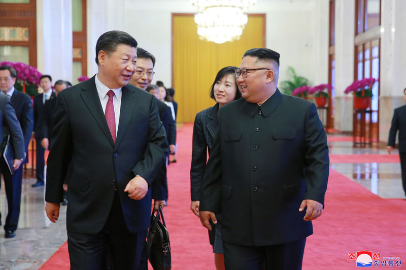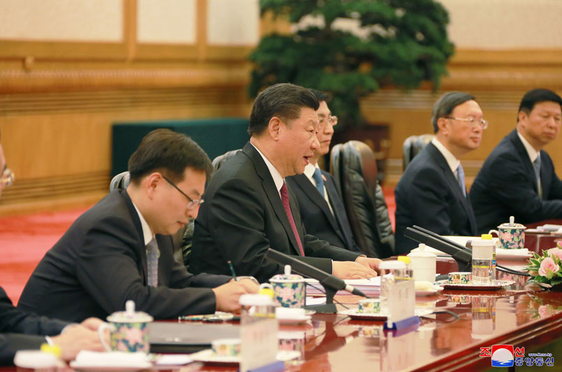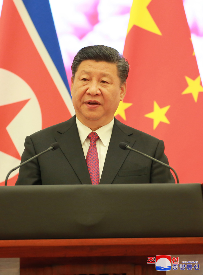 Soudruh Si Ťin-pching srdečně přivítal návštevu předsedy Kim Čong Una v Číně a řekl, že to plně projevuje jeho pevnou vůli přikládat velkou důležitost posilněné strategické komunikaci mezi oběma stranami Číny a KLDR a rozvíjet tradiční přátelství obou zemí a demonstrovat světu neporazitelnost vztahů mezi oběma stranami a zeměmi.