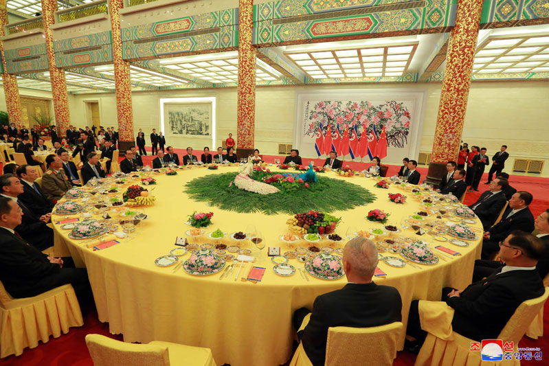 Na počest návštěvy předsedy Korejské strany práce, předsedy Komise pro státní záležitosti KLDR, nejvyššího vůdce naší strany, státu a armády soudruha Kim Čong Una v Číně generální tajemník ÚV KS Číny, čínský prezident soudruh Si Ťin-pching, uspořádal večer 19. června ve Velké síni lidu slavnostní recepci.