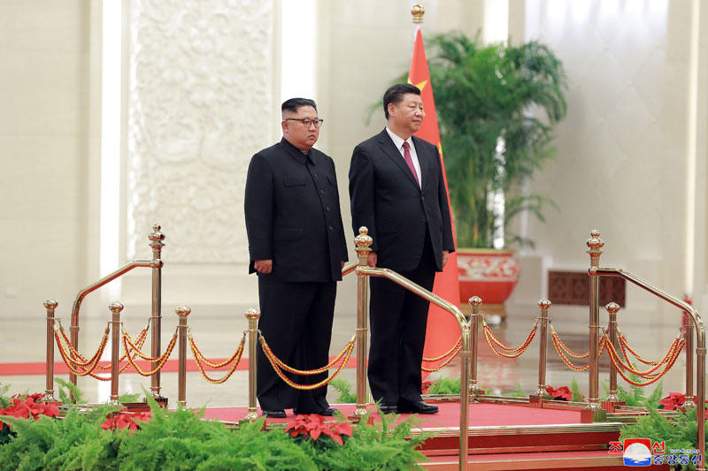 Rozhovory mezi soudruhem Kim Čong Unem, předsedou Korejské strany práce a předsedou Komise pro státní záležitosti Korejské lidově demokratické republiky, a soudruhem Si Ťin-pchingem, generálním tajemníkem Ústředního výboru Komunistické strany Číny a prezidentem Čínské lidové republiky, se konaly 19. června ve Velké síni lidu.