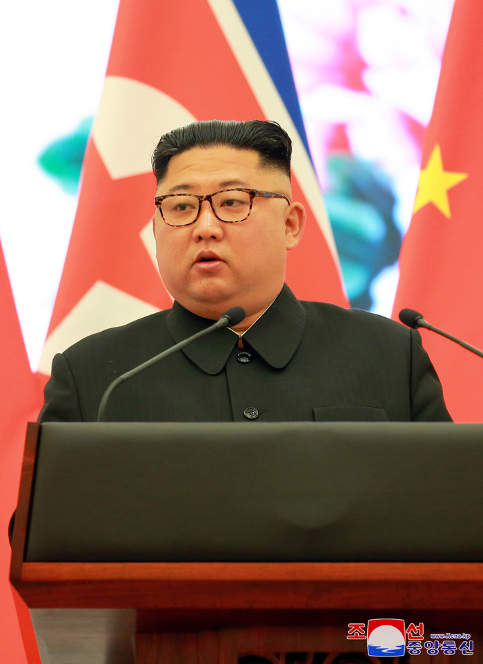 Vážený soudruh nejvyšší vůdce řekl, že je velmi potěšen, že se znovu setkává se soudruhem Si Ťin-pchingem a dalšími blízkými čínskými soudruhy v době, kdy vzniká nový historický trend na Korejském poloostrově a v regionu díky úspěšnému summitu KLDR a USA. Vyjádřil srdečné díky za vřelou pohostinnost, poskytnutou navzdory jeho pracovnímu vytížení, soudruhu Si Ťin-pchingovi.