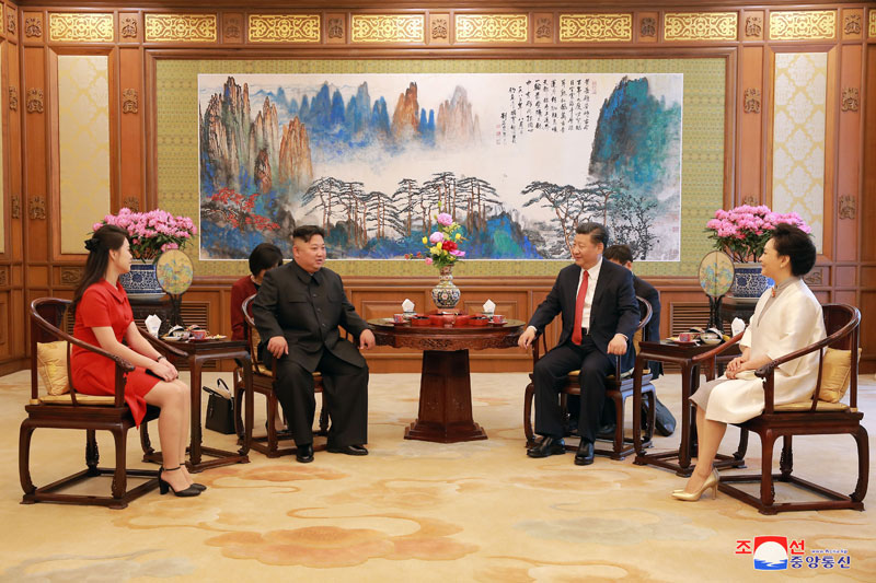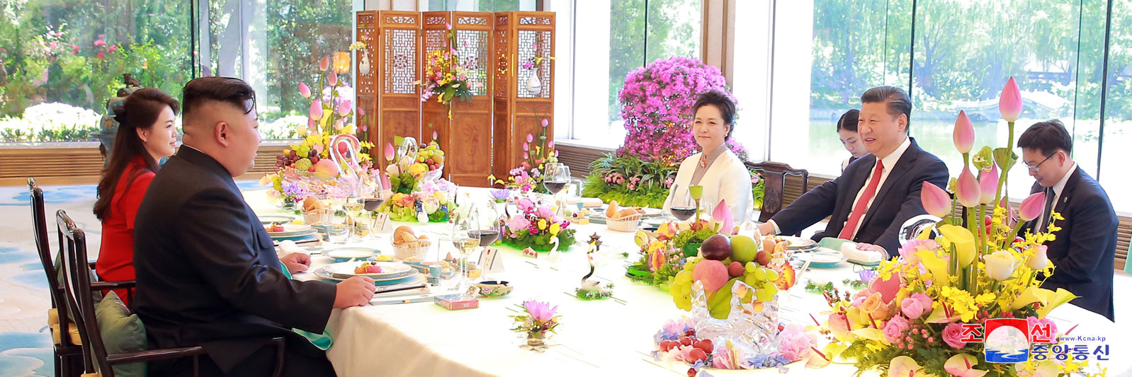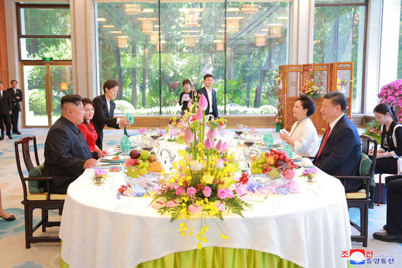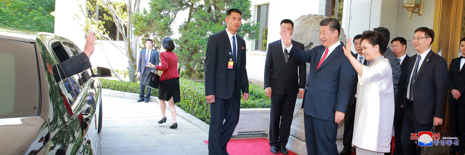 Vážený soudruh nejvyšší vůdce a první dáma Ri Sol Ču si vyměnili srdečné pozdravy s váženým soudruhem Si Ťin-pchingem a jeho manželkou Peng Liyuan, a vyjádřili upřímnou vděčnost za opakované přijetí na mimořádném místě.