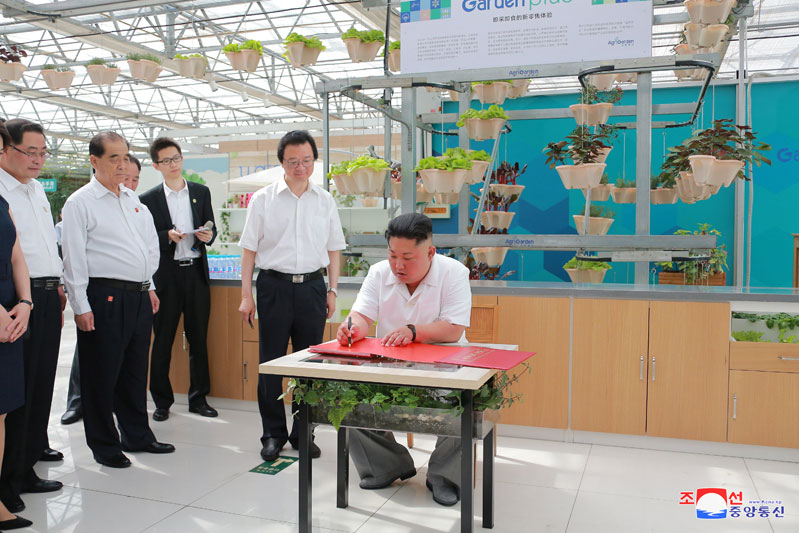 Vážený soudruh nejvyšší vůdce si pozorně prohlédl výstaviště zemědělské technologie, výzkumné středisko pěstování zeleniny, výzkumné středisko městského zemědělství, a hluboce se seznámil s úspěchy a zkušenostmi získanými při výzkumu zemědělské vědy a techniky.