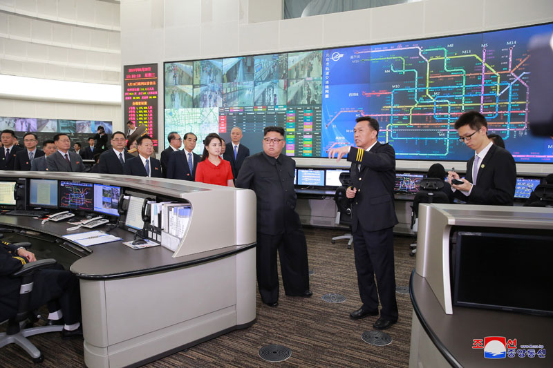 Soudruh Kim Čong Un, předseda Korejské strany práce (KSP) a předseda Komise pro státní záležitosti Korejské lidově demokratické lidové republiky, si spolu s manželkou Ri Sol Ču ve středu 20. června odpoledne prohlédl řídící centrum metra v Pekingu.
