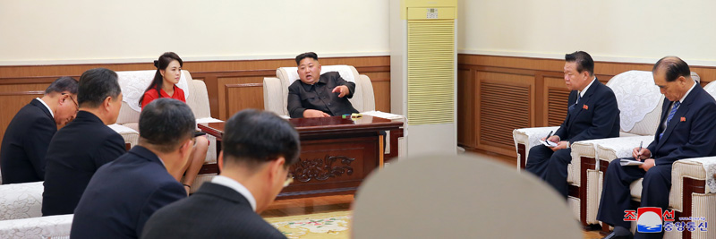 Vážený soudruh nejvyšší vůdce se setkal se zdravícími vysokými funkcionáři strany a vlády a přednesl srdečný pozdrav všemu milovanému lidu.