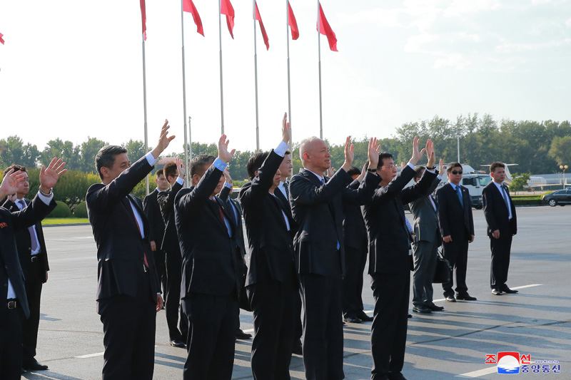 Vážený nejvyšší vůdce strany, státu a armády KLDR se rozloučil s čínskými funkcionáři, vyjádřil svou spokojenost s výsledkem návštěvy, jakož i své srdečné poděkování za jejich upřímné služby a úsilí vynaložené při laskavém doprovodu během celé jeho návštěvy.