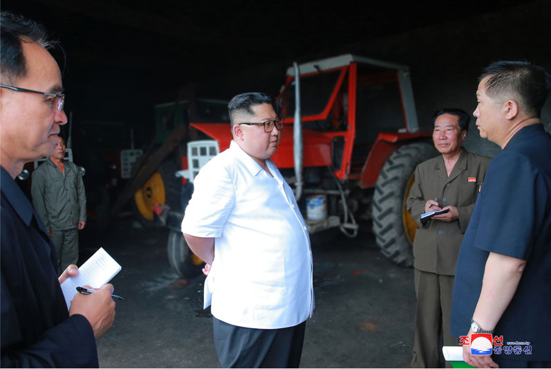 Pchjongjang, 30. června čučche 107 (2018) (KCNA) – Soudruh Kim Čong Un, předseda Korejské strany práce, předseda Komise pro státní záležitosti Korejské lidově demokratické republiky, vrchní velitel Korejské lidové armády, nejvyšší vůdce naší strany, státu a armády, poskytl terénní pokyny kraji Sindo v provincii Severní Pchjongan.