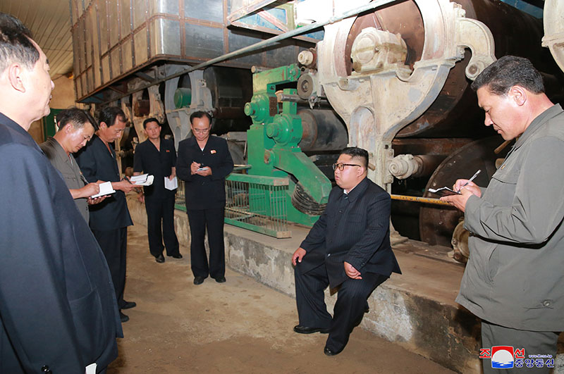Vážený soudruh nejvyšší vůdce se seznámil s modernizací továrny, poukázal na nedostatky a nastínil úkoly pro rozvoj závodu. Vážně pokáral funkcionáře za to, že selhali v úsilí o co nejdřívější dokončení procesu výroby papíru, na který strana klade velký důraz a čeká na něj, a že neplní svou povinnost a roli. Instruoval funkcionáře, aby naléhavě dokončili modernizaci procesu výroby papíru, soustředili úsilí na zlepšení výrobních objektů a urychlili projekt bagrování ústí řek.
