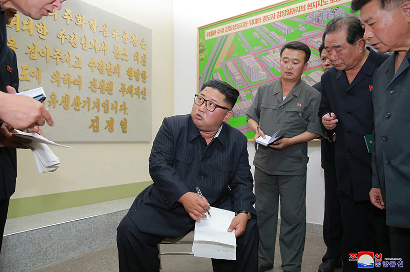 Pchjongjang, 2. července čučche 107 (2018) (KCNA) – Soudruh Kim Čong Un, předseda Korejské strany práce, předseda Komise pro státní záležitosti Korejské lidově demokratické republiky a vrchní velitel Korejské lidové armády, nejvyšší vůdce naší strany, státu a armády, poskytl polní pokyny Sinuidžuské továrně chemických vláken.