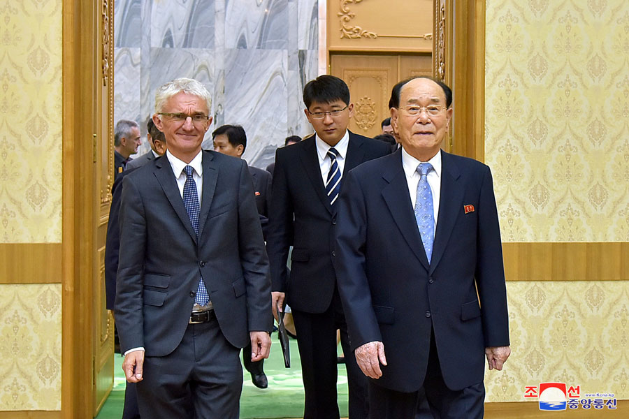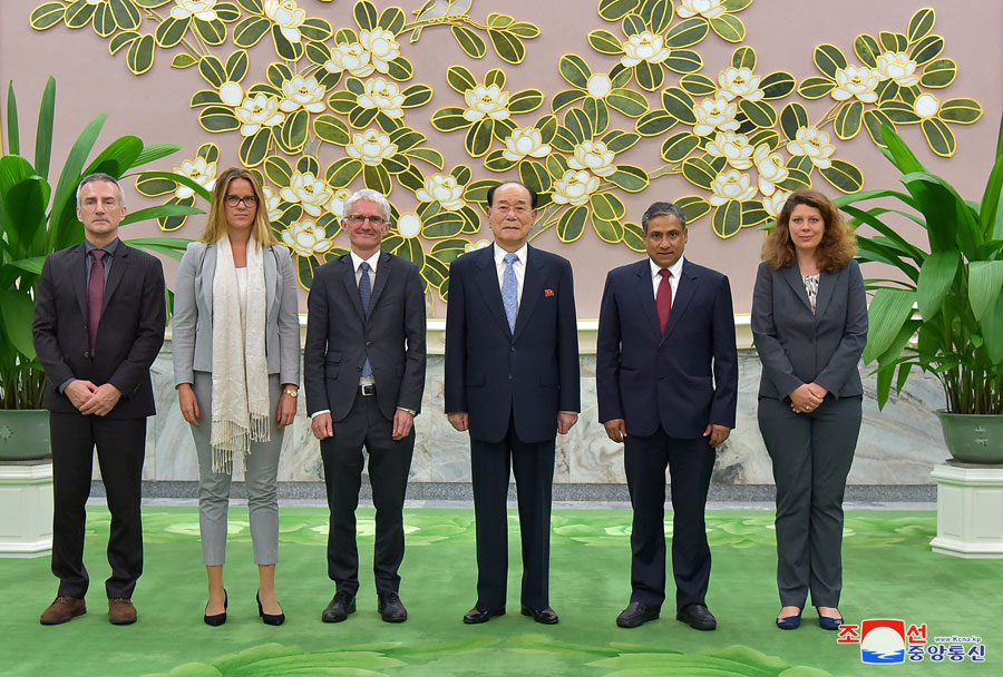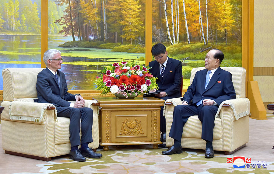 Pchjongjang, 12. července čučche 107 (2018) (KCNA) – Soudruh Kim Jong Nam, člen prezídia Politického byra Ústředního výboru Korejské strany práce a předseda prezídia Nejvyššího lidového shromáždění KLDR, se setkal a jednal s Markem Andrewem Lowcockem, zástupcem generálního tajemníka OSN pro humanitární záležitosti, a jeho doprovodem, který ho ve středu 11. července navštívil v Sále shromáždění Mansude.