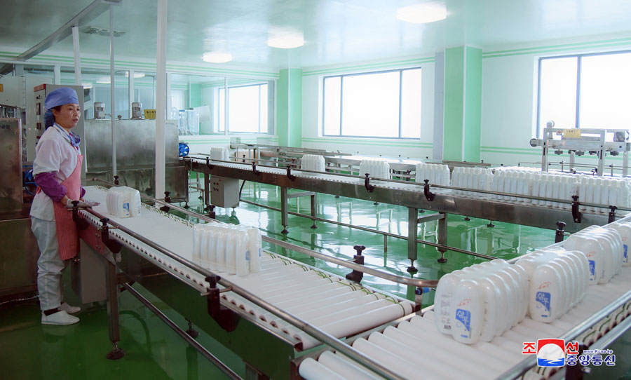 Pchjongjang, 14. července čučche 107 (2018) (KCNA) – Technici a dělníci Pchjongjangské kosmetické továrny spojují své úsilí k masové výrobě kvalitní kosmetiky, kterou lid oceňuje.