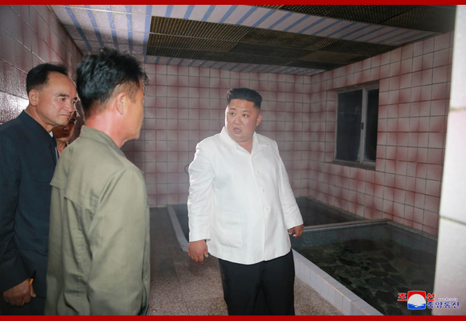 Vážený nejvyšší vůdce soudruh Kim Čong Un poskytl polní pokyny rekreačnímu středisku Onpcho. Navštívil ho pozdě v noci a seznámil se s jeho řízením, provozem a situací. Při pohledu na koupelnu tábora poukázal na její velmi špatný stav a poznamenal, že vany pro léčbu horkou vodou jsou špinavé, sešlé a nehygienické kvůli nedbalému vedení. Přísně poukázal na to, že pokud rekreační středisko sklízí kritiku lidu namísto jeho přízně kvůli tak špatnému provozu a řízení, ačkoli je opatřeno pamětní deskou, která označuje, že je to objekt navštívený velkým vůdcem a velkým generálem, dopouští se zločinu zmaření zásluh velkých vůdců, kteří postavili prázdninový tábor pro lid v tak krásném prostředí, kde po celý rok tryská horká pramenitá voda.