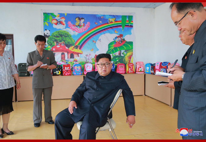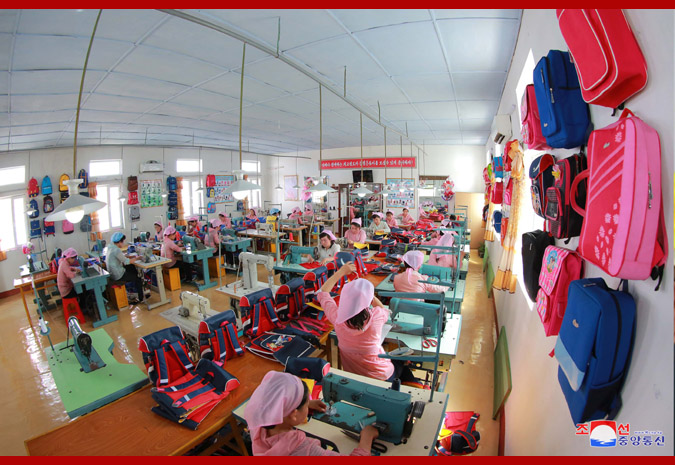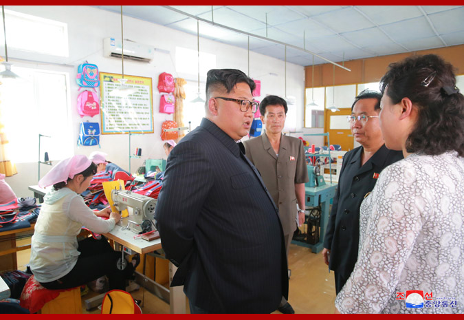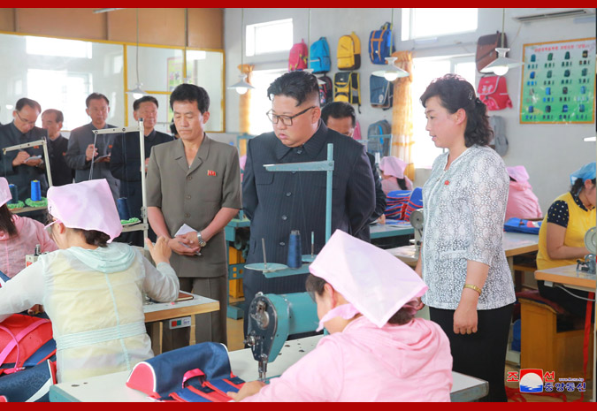 Vážený nejvyšší vůdce soudruh Kim Čong Un poskytl polní pokyny Čchongdžinské továrně na tašky.