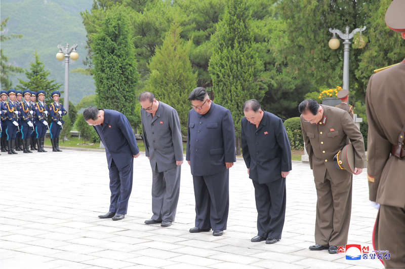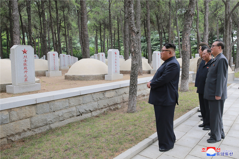 Pchjongjang, 27. července čučche 107 (2018) (KCNA) – Soudruh Kim Čong Un, předseda Korejské strany práce, předseda Komise pro státní záležitosti Korejské lidově demokratické republiky a vrchní velitel Korejské lidové armády, nejvyšší vůdce naší strany, státu a armády, ve čtvrtek 26. července u příležitosti 65. výročí vítězství ve Velké vlastenecké osvobozenecké válce navštívil hřbitov mučedníků Vlastenecké osvobozenecké války a vzdal poctu mučedníkům Lidové armády.
