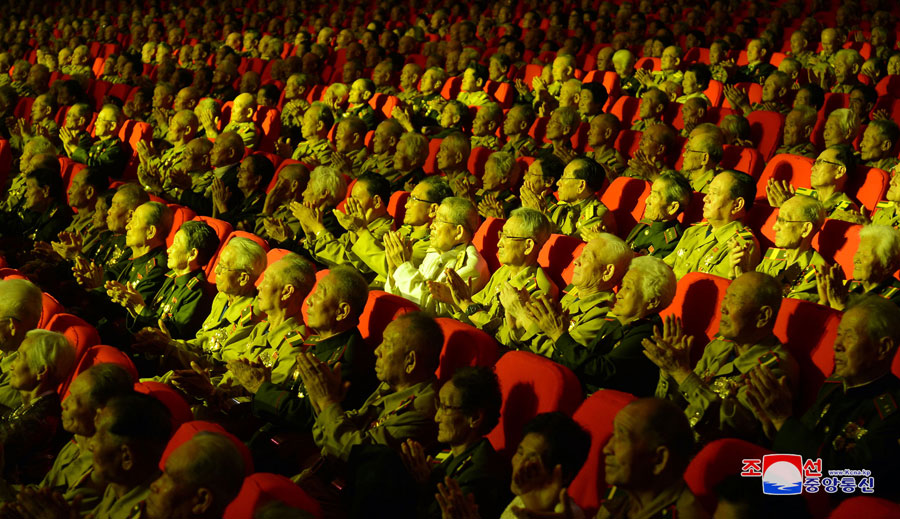 Pchjongjang, 28. července čučche 107 (2018) (KCNA) – Hudební a taneční představení Souboru písní a tanců Korejské lidové armády pro účastníky 5. národní konference válečných veteránů se konalo Domě kultury „25. dubna“.